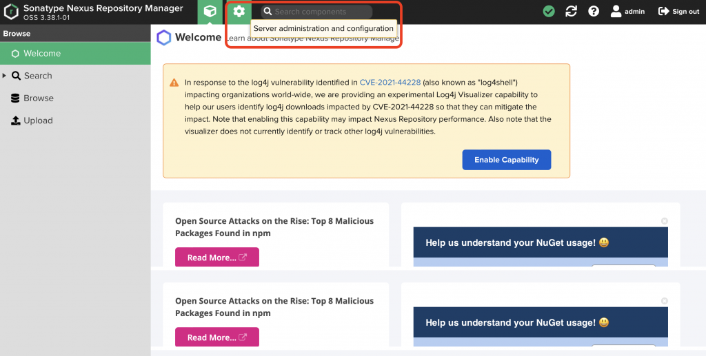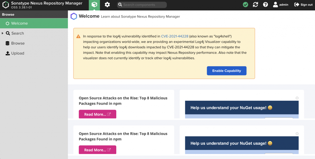 We will use Sonatype Nexus to manage our private package repository.